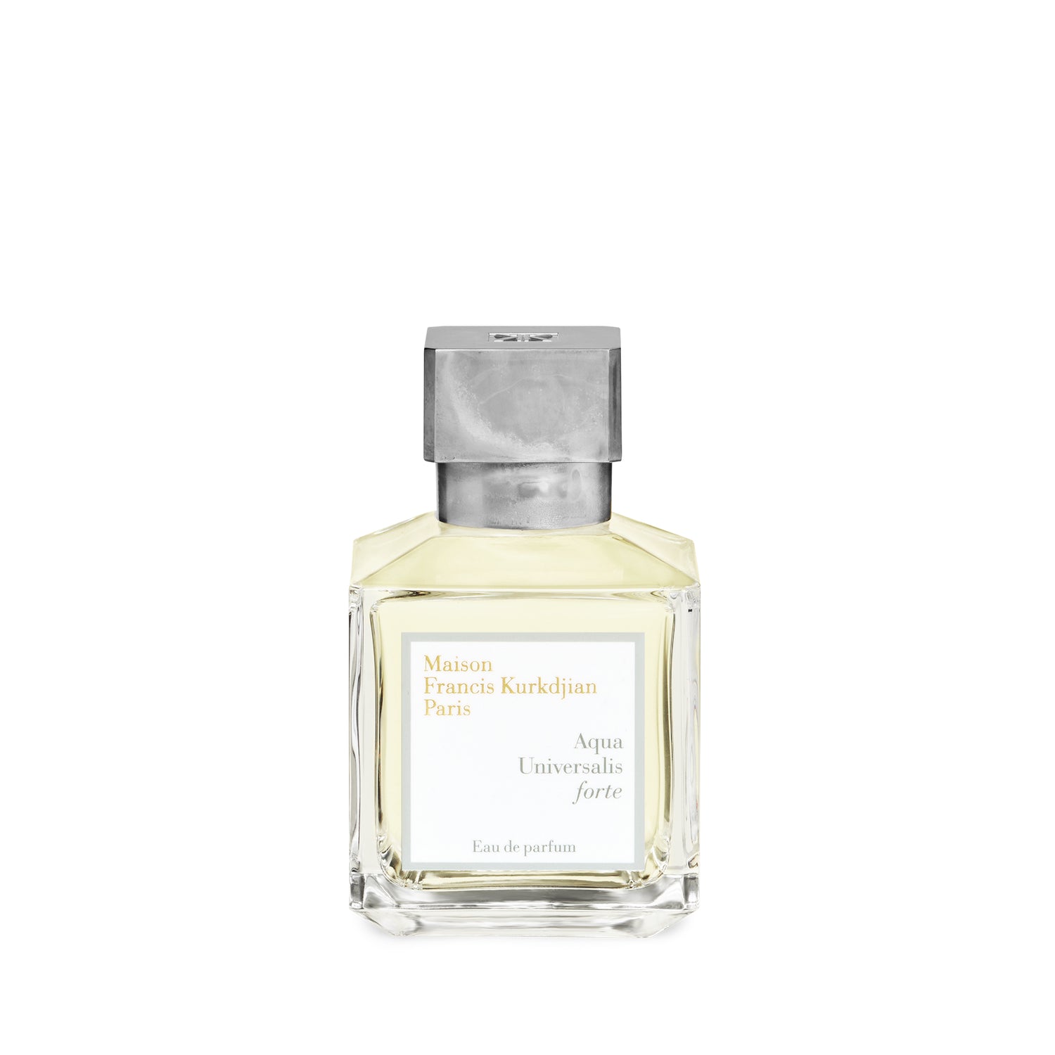 La variazione forte di Aqua Universalis si aggiunge al fascino di questa espressione di freschezza solare. L'eau de parfum Aqua Universalis forte di Maison Francis Kurkdjian offre una persistenza, uno scintillio e un'intensità moltiplicate dal bergamotto verde, dalle assolute di Gelsomino e di rosa e dai legni chiari, il tutto sostenuto da un muschio potente. La fragranza floreale muschiata vibra sulla pelle come oro sotto il sole d'estate, mentre il suo profumo luminoso e intenso veste elegantemente sia la pelle femminile che quella maschile.