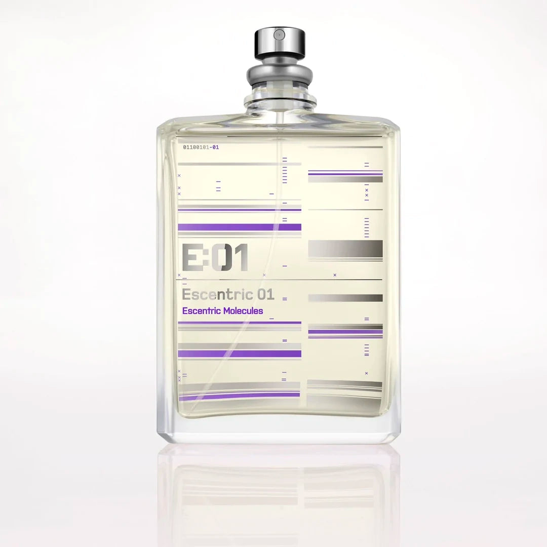 Escentric 01 si concentra su Iso E Super al 65% del composto profumato in una formula abbreviata progettata per massimizzare l'efflorescenza della molecola. Contiene scorza di lime, hedione (bocciolo di gelsomino verde), iris, note balsamiche e muschio fresco.